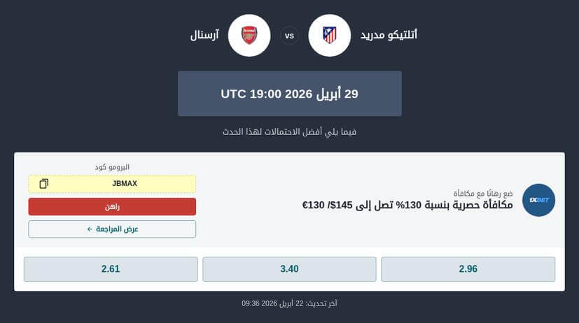 5.3 ⚽️ ما أفضل رهان في مباراة أتلتيكو مدريد ضد أرسنال؟