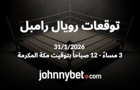 من سيربح رويال رامبل سؤال يشغل عشّاق المصارعة الحرة حول العالم عرض رويال رامبل الرياض 2026، الحدث التاريخي الذي يدخل سجلات كأول نسخة تُقام خارج أمريكا الشمالية. ورغم أن احتمالات رويال رامبل الرسمية لم تُطرح بعد لدى مواقع المراهنات لكن عد لهذا المقال قبل الحدث لتجدها، إن المؤشرات الحالية تسمح بوضع توقعات رويال رامبل وتحليل السيناريوهات المحتملة قبل الحدث. في هذا المقال سنقدّم تحليل رويال رامبل شاملًا، مع توقعات مجانية لرويال رامبل، نظرة على أفضل الخيارات لعشّاق الرهان اونلاين على رويال رامبل قبل ليلة 31 يناير 2026 المنتظرة في الرياض.